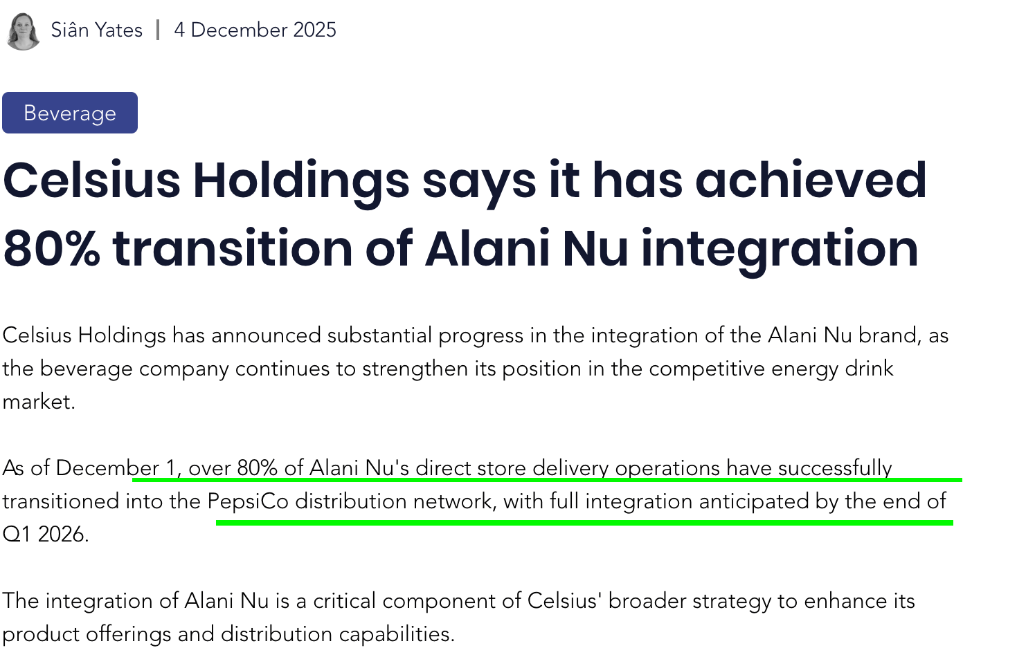 The termination of the prior Alani Nu Distribution was something that was done and the market punished the stock in the short-term with the $247 million in costs, which, were covered by Pepsi.