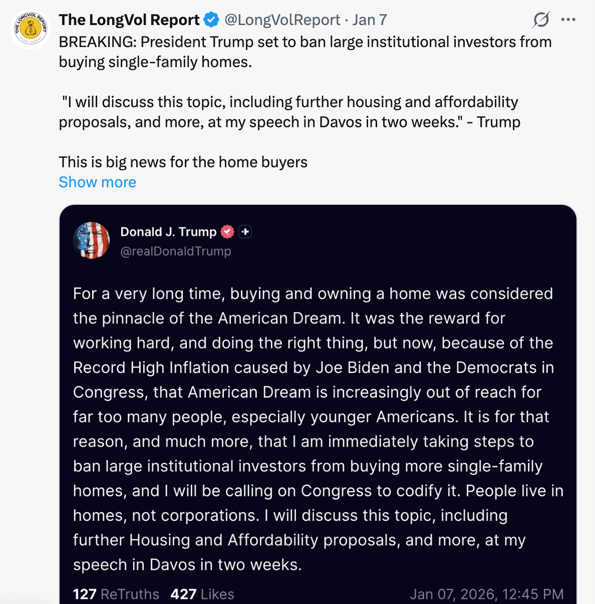 This has been a long-time coming and I suspect there’s more to come surrounding this because Bessent has made comment to it last year that they were going to try to do “something” to free up housing, one way or another.