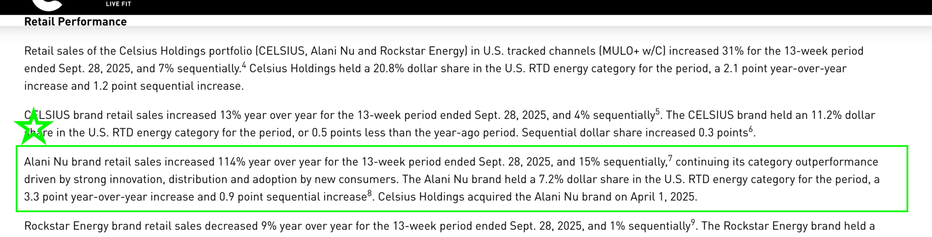 Of course, the Celsius brand matters itself but Alani Nu is all the rage.