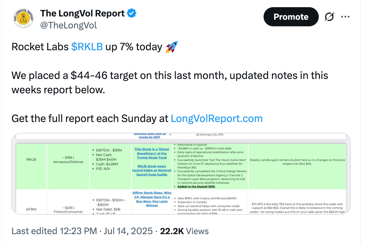 ✅ $RKLB ( ▼ 1.09% ) made it into the report last month: readers trading momo flows on this