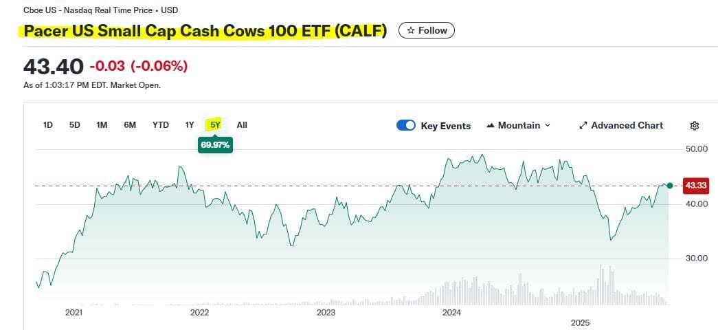 I also am a big fan of the $CALF ( ▲ 1.09% ) ETF which I’ve owned in client portfolios all year long and plan to continue to hold as we get into the heart of this cycle. The great thing about this name is the blend of the holdings and it’s not as volatile as select small caps tend to be.