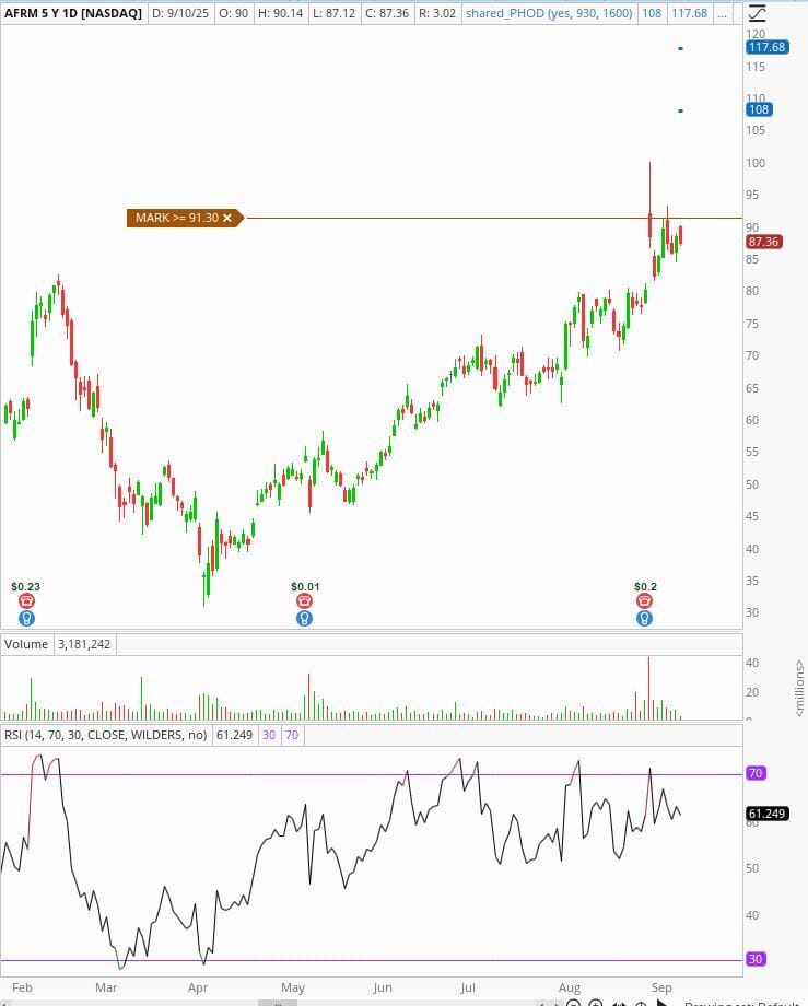 $AFRM ( ▼ 2.19% ) was another name from the best ideas section (from a few weeks ago while I was in Japan) and many of you cashed 5-figure trades on that as well. The move post earnings on this was incredible, but, short-lived and likely has to rest and trade back into $80s.