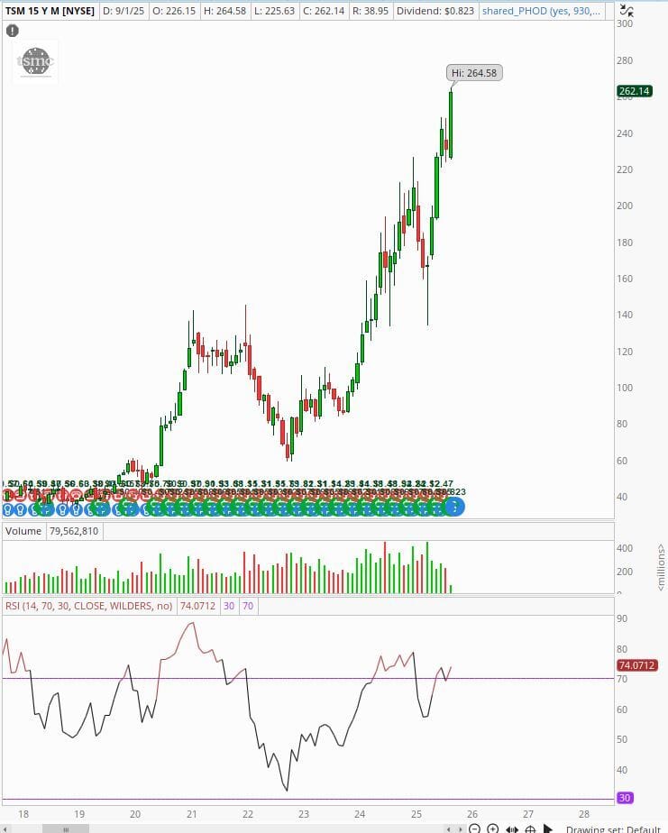 This week we had about 5 names in this section but it was $TSM ( ▼ 0.38% ) - Taiwan Semiconductor that has been the standout with new all-time highs on the week up nearly +10%.