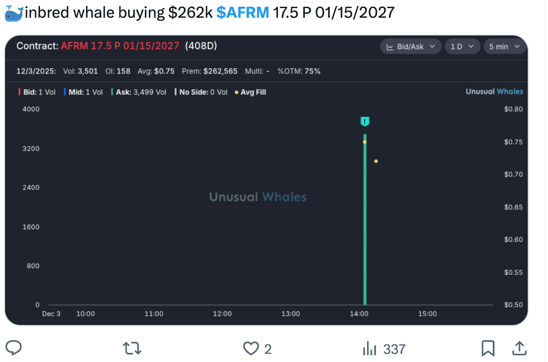 There is one that we traded this Summer that has come back to life again for me and it just so happened today that I saw some flows on the options chain (in addition to the chart) that got my attention. What I also saw after searching the $cash tag on X today was the usual nonsense of people reading into a “whale” that bought 2027 puts.