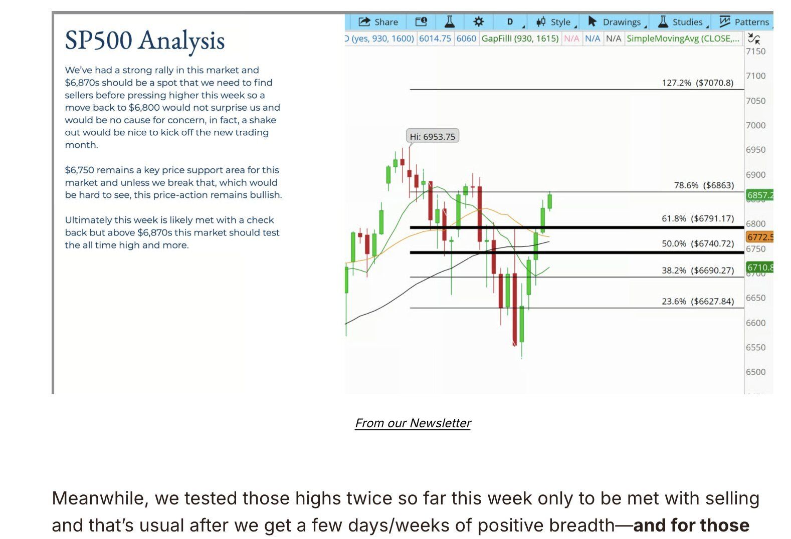 We broke that $6970 area Dan talked about this week in the newsletter which is a good sign for the broad markets right now and a lot of names on my list are triggering new ideas.