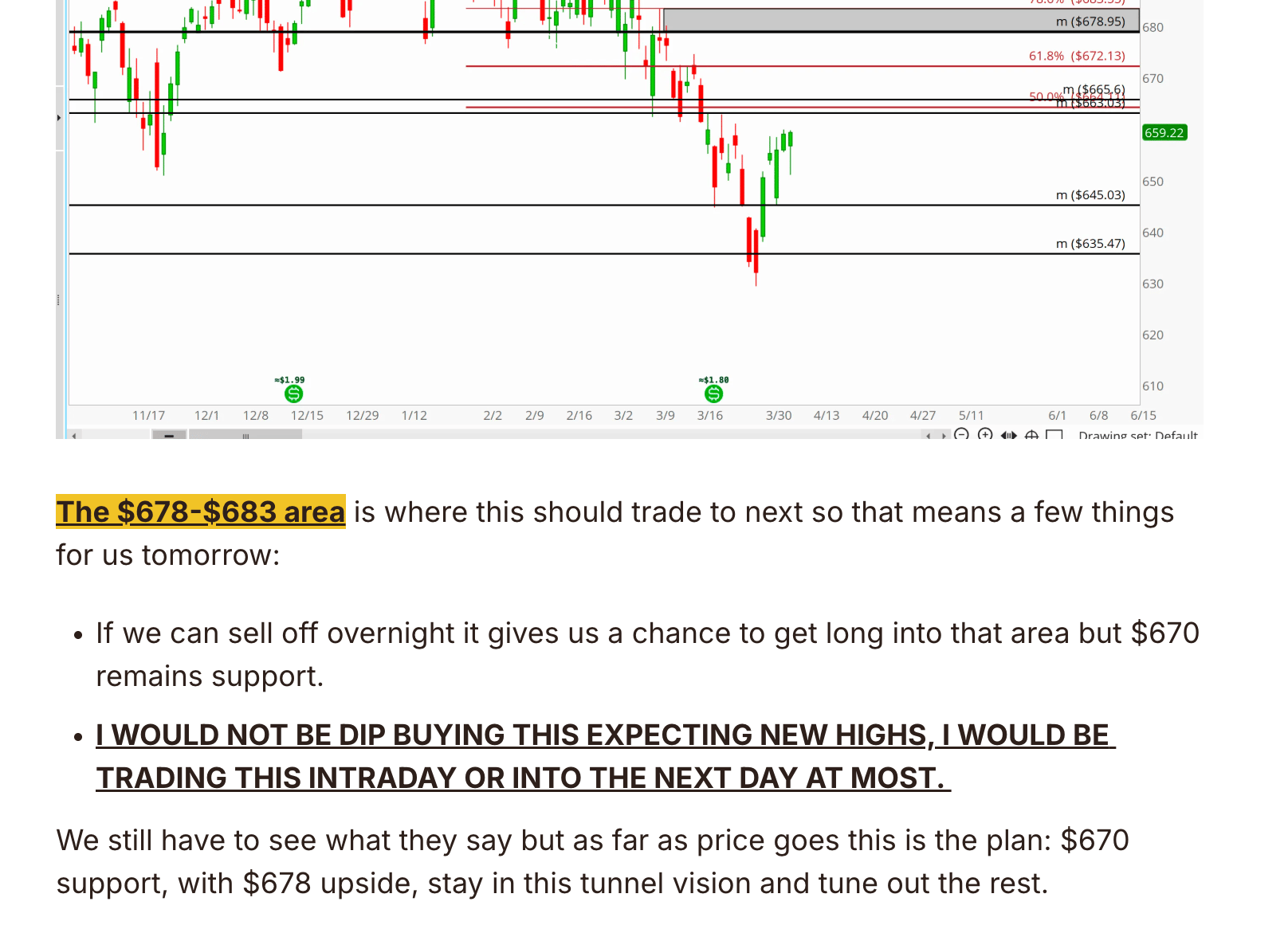 Take for example last week when I talked about how to trade the $SPY ( ▼ 0.07% ) gap up into the highs we traded last week.