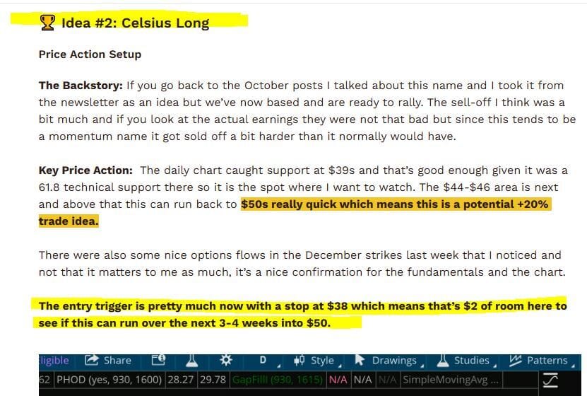 CELH FROM THE DECEMBER NEWSLETTER +40% | +120% on CALLS