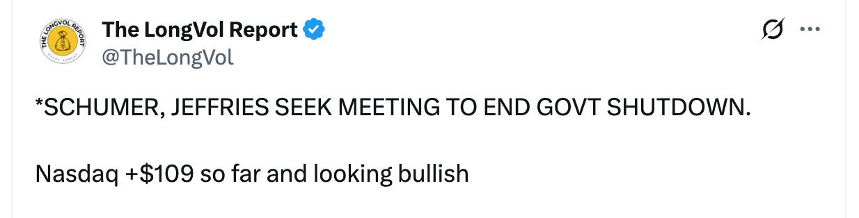 The key here on the $SPY ( ▲ 0.35% ) is $675 right now and as long as we hold that then we just keep pressing higher. There is also a gap fill on the futures (ES) at $6880s so that is likely going to fill and we’ll see where we go from there but so far this is decent price action on the equity side today. My view is that any more news that is positive to end the Government shutdown only leads to more buying in the indices and other popular names causing a nice potential rally and we all know Trump. What matters to him is the stock market so it being down like that last night is not a good look so maybe they get this done and I am seeing some flows in some options that make me think we get it.