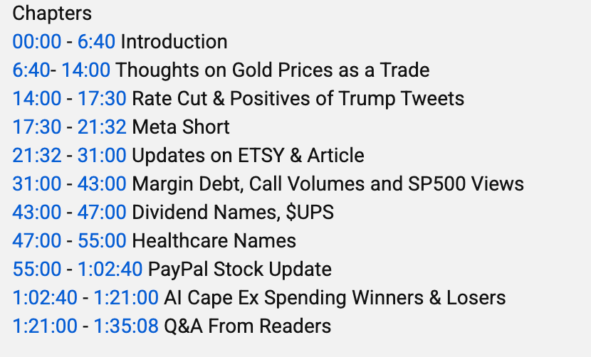 New videocast out discussing, $ETSY, $PYPL, Gold on Highs, $SP500 after Friday and Why Margin Debt Is a BIG Issue Right now